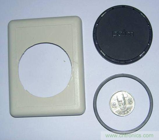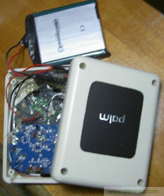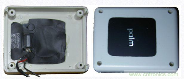 由於點金石表麵是有一定凹陷下去的,非常契合palm的後蓋,而這個凹陷實在難以加工。另外,點金石裏那圈非常細的線圈也是用膠水粘在外殼上的,比較難取下來。而且點金石上那個“plam”的金屬字也比較酷,因此於是我決定將點金石嵌入到移動電源中。
