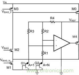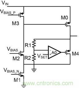 因此,輸出電壓對溫度和工藝變化極為敏感。要避免這種問題,就必須創建一個更為理想的跟隨器,其中 M4 是反饋環路的一部分(圖3)。
