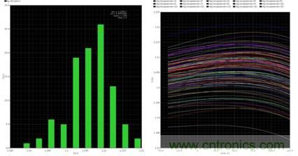 所推薦帶隙參考不僅可用於超低噪聲、高PSRR的低壓降穩壓器,而且還可采用CMOS 9T5V 技術實施。PSRR值如圖8所示,輸出電壓精度的蒙特卡洛溫度變化仿真結果如圖9所示。測量結果請參見表1。