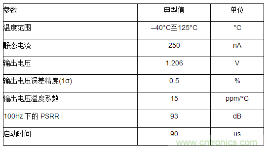 上述電壓參考在低頻率下支持90dB。輸出電壓變化的標準偏差是 0.5%,在–40℃至125℃溫度範圍內的溫度係數為15ppm/℃。這些特性可在1.6V至5.5V的電源電壓範圍內實現。可實施各種用於為電壓參考實現輸入噪聲抗擾度的方法。
