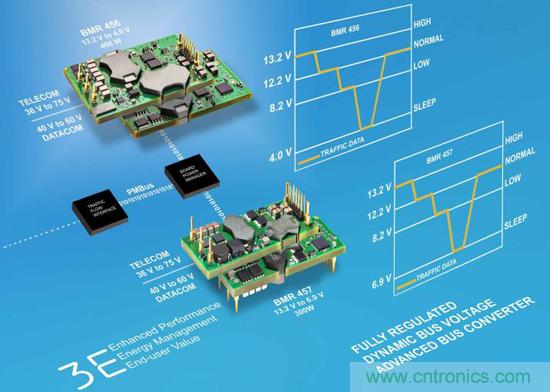 除了數字POL標準外,AMP聯盟還定義了兩項先進總線dc-dc轉換器標準:‘ABC-ebAMPTM’標準涉及尺寸為58.42 x 22.66 mm,功率範圍為264 至300 W的先進總線模塊;‘ABC-qbAMPTM’標準針對尺寸為58.42 x 36.83 mm,功率範圍為420至468 W的四分之一模塊電源。這些標準詳細說明了機械占位麵積、特性和配置文件。