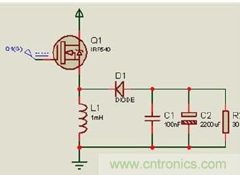 占空比為D的PWM波控製開關管Q1,從而達到這樣的一個效果,交替導通或截止,再經L和C濾波器在負載R上得到穩定直流輸出電壓Uo。本電路屬於降壓型電路,題目要求的30--36V 的輸出電壓是實現不了的。