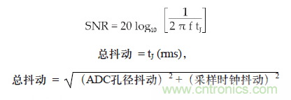 總抖動會產生誤差電壓,ADC 總SNR 的限製因素為