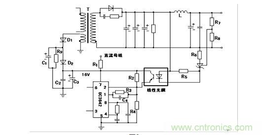采用線性光耦改變誤差放大器的輸入誤差電壓。