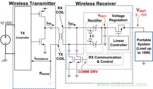 圖1zhongxianshideshiyizhangjinmiouhezhinengwuxiandianyuanxitongdejianhuatu。ruguocongyuanlitudejiaodulaikan,takanqilaihenxiangyikuanbianyaqiouhegelishidianyuanzhuanhuandianlu。ranerzaizheli,chujixianquanhecijixianquanshiwanquanfenlikailai,erbushiraozaitongyicixinshangde。diannengcongfasheqi(初級,或TX)端傳輸到接收器(次級,或RX)端,而接收器電路以數字脈衝的形式將反饋發送回磁耦合器件。