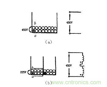 采cai用yong初chu次ci級ji分fen段duan繞rao製zhi,也ye可ke以yi實shi現xian電dian源yuan變bian壓ya器qi噪zao聲sheng抑yi製zhi。就jiu目mu前qian國guo內nei的de產chan品pin應ying用yong情qing況kuang來lai看kan,使shi用yong初chu次ci級ji分fen段duan繞rao製zhi技ji術shu,對dui抗kang共gong模mo噪zao聲sheng有you非fei常chang明ming顯xian的de抑yi製zhi效xiao果guo。上shang圖tu中zhong,2(a)suoshiweiyibanbianyaqi,ruocaiyongrutusuoshidefenduanraozhijishufenzuoliangbufenlairao,cishidegongmoganraojiangdadajiangdi。chucizhiwai,gairaofahaiyoulingwaideyoudian。jiashetu2(a)和圖2(b)變壓器的初次級繞組隻有兩層,則圖2(a)的繞組的a、b間有450V電位差,而如圖2(b)將初次級線圈分兩部分繞製,a、b之間的電位差就隻有225V了。很顯然,前者產生的分部電容將有很大的泄漏電流,而後者隻有一半的電位差,其泄漏電流就會大大減少。