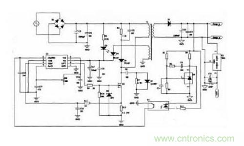 開關電源電路控製芯片采用UC3842,UC3842是目前比較理想的新型的脈寬調製器。由該集成電路構成的開關穩壓電源與電壓控製型脈寬調製開關穩壓電源相比具有以下特點:1)微調的振蕩器放電電流,可精確控製占空比;2)電流模式工作到500kHz;3)自動前饋補償;4)鎖存脈寬調製,可逐周限流;5)內部微調的參考電壓,帶欠壓鎖定;6)大電流圖騰柱輸出;7)欠壓鎖定,帶滯後;8)低啟動和工作電流。