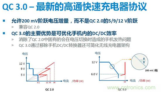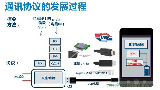從事電源設計開發和技術支持工作超過24年的Jason分fen析xi道dao,從cong線xian型xing降jiang壓ya電dian源yuan開kai始shi,電dian源yuan開kai發fa在zai摸mo索suo中zhong前qian進jin,體ti積ji越yue做zuo越yue小xiao,充chong電dian方fang式shi也ye迎ying來lai了le新xin的de變bian革ge,現xian在zai的de趨qu勢shi是shi快kuai速su充chong電dian。以yi前qian的de充chong電dian器qi隻zhi提ti供gong一yi個ge固gu定ding的de輸shu出chu電dian壓ya(5V),dianyuantigongdeshuchugonglvqujueyushuchudianliudedaxiao,shuchudianliuyuedazetigonggeidianchiduandegonglvgengda,congertigaochongdianxiaolvjianxiaochongdianshijian。dandianliubunengwuxianzhidezengjia,yinzaishuchudianlandegonghaosuidianliudezengdahuixiangyingdezengjia。yinerkuaisuchongdianyingyongyingyunersheng。qishixianfangfashishoujigenchongdianqijinxingshuangxiangtongxun,dianyuanhuigenjufuzaiduanfachudezhilingzuochufanying,gaibianqishuchudianyahedianliu,shixianjianxiaogonglvsunhao、增大充電功率、減小充電時間的目的,從而實現快速充電。