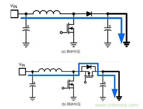 如ru果guo不bu考kao慮lv升sheng壓ya轉zhuan換huan器qi的de自zi然ran限xian製zhi,係xi統tong可ke靠kao性xing會hui降jiang低di同tong時shi成cheng本ben會hui增zeng加jia,從cong而er會hui導dao致zhi係xi統tong其qi它ta部bu件jian的de過guo度du設she計ji。升sheng壓ya電dian路lu具ju有you一yi個ge從cong輸shu入ru到dao輸shu出chu的de自zi然ran導dao通tong路lu徑jing(圖1)。即使這個轉換器是關閉的,電流也可以通過升壓二極管或同步功率FET的體二極管流至輸出。