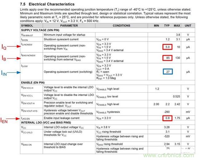 需要注意的一點是,對於LM43603來說,如表1中所示,這個數據表中所表示的是一個典型條件下的無負載輸入電流。