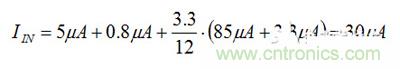 我計算出的30μA電流值有點不同,不過對於粗略估算來說,這個值已經十分接近了。