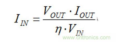 以SIMPLE SWITCHERLM22670 3A降壓穩壓器的數據表為例,負載為1.5A,輸入電壓和輸出電壓分別為5.5V和3.3V情況下的效率大約為91%。這使你的輸入電流大約為: