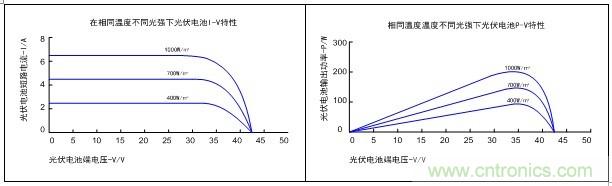 根據光伏電池參數,在相同溫度、不同光照條件下,光伏電池的典型I-V和P-V特性如圖1所示。