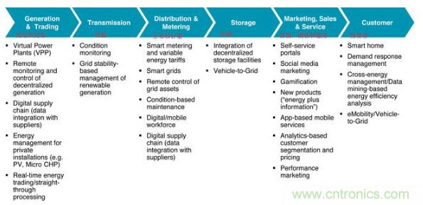 利用新的信息和通信技術來實現能源公司的產品和服務,價值鏈(從發電廠到消費者)以及內部支持功能(控製,采購,人力資源等)的綜合轉型,以滿足相關客戶的期望。