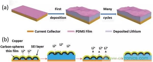 a)在塗覆多孔PDMS薄膜的Cu基底上沉積鋰;