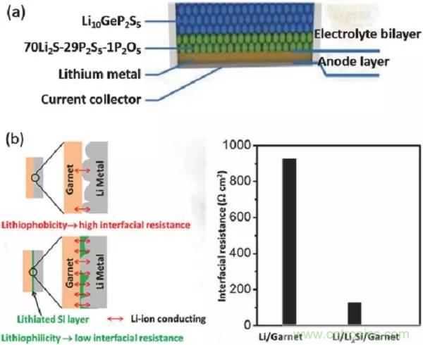 圖15.通過塗覆不同的穩定材料,改善固體無機電解質和鋰箔之間的固-固界麵