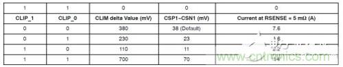 表1:5 m檢測電阻對應的峰值過流保護值(正向過流保護)