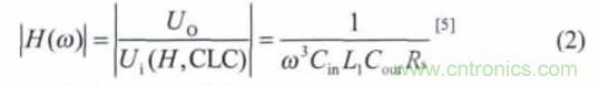 對於開關電源輸出而言,其交流信號即為電源紋波信號根據CLC 濾波電路傳遞函數: