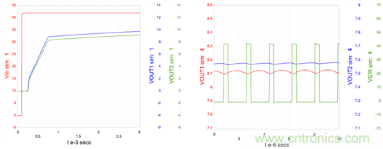 圖6:在WEBENCH電源設計工具中針對一個Fly-Buck設計生成的啟動和穩定狀態波形
