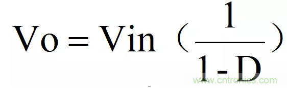 ■輸出電壓與負荷比(D)之間的關係不如在降壓調整器中那麼簡單。在連續導電的情況下: