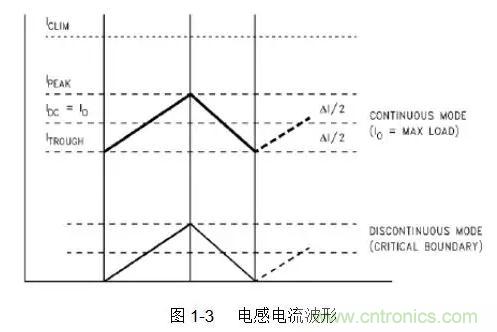 Buck/Boost型開關電源,伴隨開關管的開和關,儲能電感的電流波形如圖1-3所示: