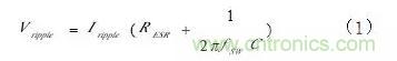 從圖中可以看到,電感的電流波形等價於在直流I(DC)上疊加一個I(P-P)值為ΔI的交流。因而,I(DC)成為輸出電流I(O),主要消耗在負載上;交流ΔI則消耗在負載電容的ESR(Equation Serial Resistance)上,成為輸出紋波V(ripple)。