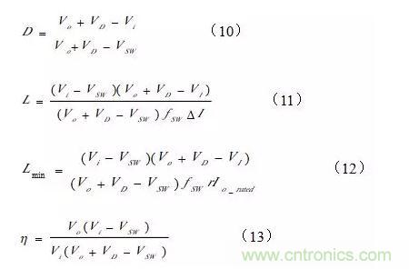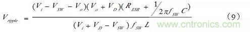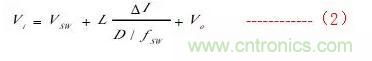 其中:iV為輸入電壓,SWV為開關管電壓,oV為輸出電壓,SWf為開關頻率,D為占空比。