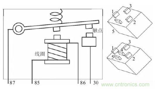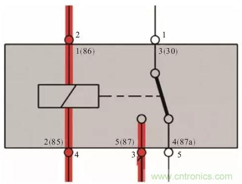 如下圖所示,85#和86#端子是線圈,屬於控製部分;87#和30#端子是觸點,屬於被控製部分(即輸出端)。