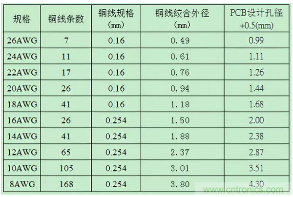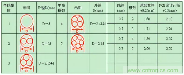 多根飛線直徑計算參考如下表格: