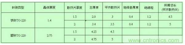 33.結構設計,散熱片使用螺絲固定參考以下表格設計,實際應用中應增加0.5-1mm餘量,參考如下表格: