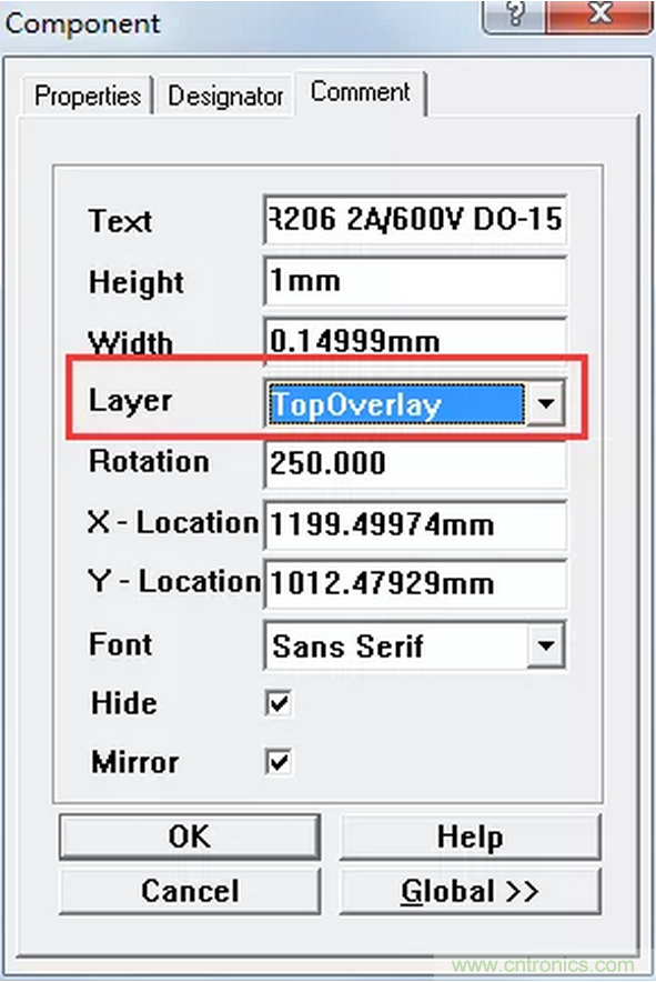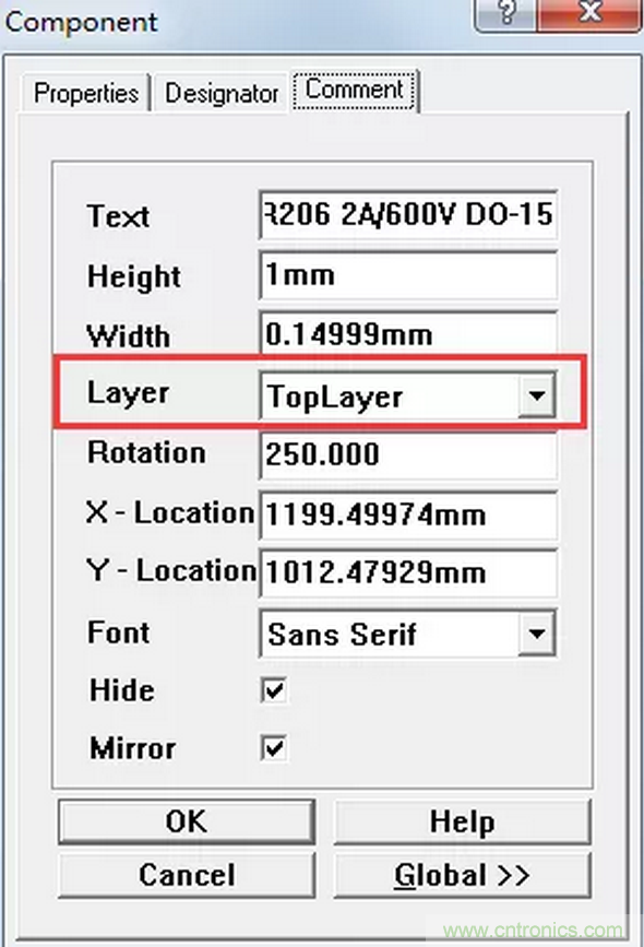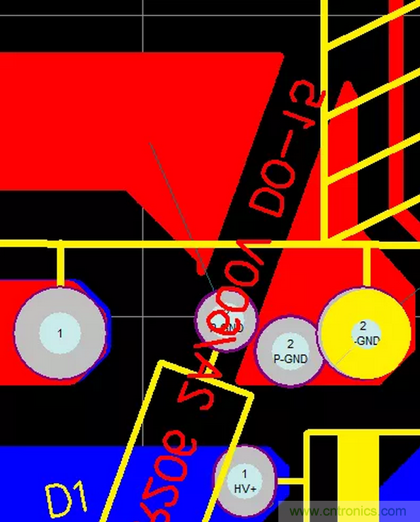 D1這個元件有個文字描述的屬性放在了頂層銅箔,如圖