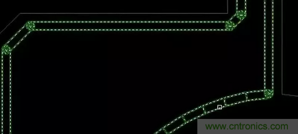16.畫小板時,在小板引腳的90度拐角處增加一個圓形鑽孔。