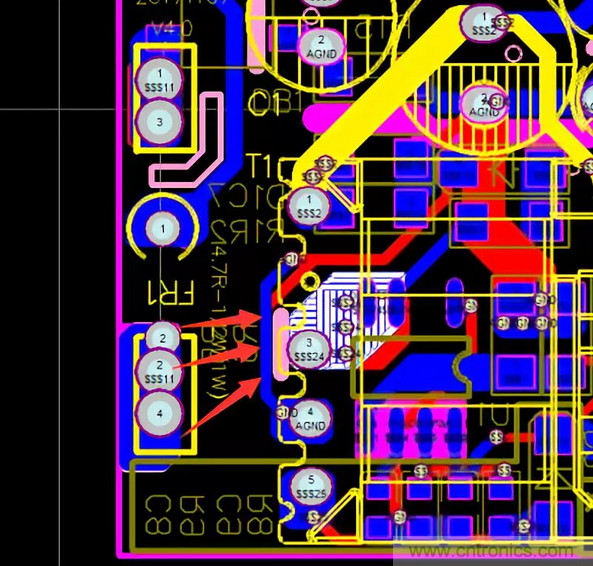59.高頻開關管平貼PCB時,PCB另一麵不要放芯片等敏感器件。
