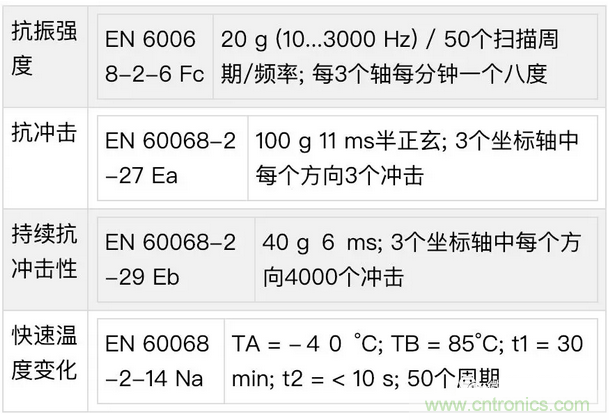 標準文件冗長,因為有標準可查看,就不一一具體說明了。這裏除了可以去看看EN60068這個標準文件,選型的時候對您也是有幫助的,特別是如果您的產品應用有震動例如振動台、抗衝擊例如機車床設備等等,或者環境使用溫度有高低溫要求的時候,這時這些標準的符合性就是您選型首要依據了。