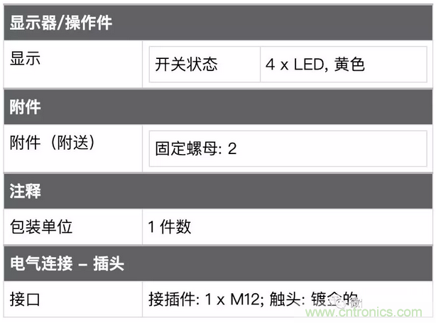 顯示:開關狀態 4xLED黃色 意思是表明這個傳感器有四個黃色的LED指示燈顯示他的通斷狀態,一般這類傳感器用4個LED基本上可以做到沒死角的能看見其開關狀態了。