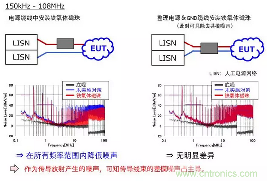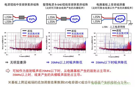 對於放射噪聲,也調查問題源是共模傳導模式還是差模傳導模式。(150kHz-30MHz帶域)