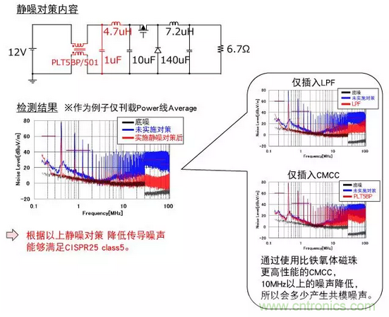 【導讀】汽qi車che中zhong搭da載zai各ge種zhong各ge樣yang的de電dian子zi設she備bei。為wei了le產chan生sheng電dian子zi設she備bei具ju備bei各ge自zi需xu要yao的de電dian壓ya,而er致zhi力li於yu電dian源yuan電dian路lu的de研yan發fa。為wei使shi電dian源yuan電dian路lu具ju有you效xiao率lv化hua,使shi用yong開kai關guan方fang式shi的de產chan品pin,但dan這zhe也ye是shi產chan生sheng噪zao聲sheng的de問wen題ti根gen源yuan。在zai此ci,介jie紹shao車che載zai設she備bei電dian源yuan電dian路lu(DC-DC轉換器)的靜噪對策。在此介紹的對策內容和對策元件不僅適用於汽車還適用於工業用設備等。