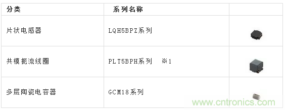 ※1:需要比1更有效果的靜噪對策時可考慮使用PLT10HH係列等其他共模扼流線圈。關於汽車的電源用共模扼流線圈,請參照以下選擇表。