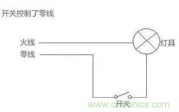 1、開關控製了零線,火線直接進了燈具