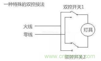 雙控開關有很多種接線方式,如果電工采用了下麵這種接線方法,就會關燈後發微光。