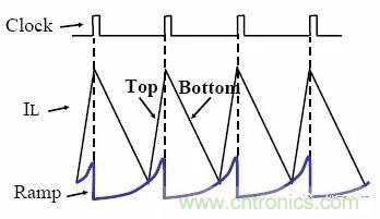 當輸入電壓比輸出電壓高△V時,開關管D保持常開,開關管C保持常關,開關管A和B工作於同步的Buck模式。其工作原理與一般的同步的Buck工作原理完全相同,控製的方法為穀點電流模式,如圖2所示,其中D為占空比。