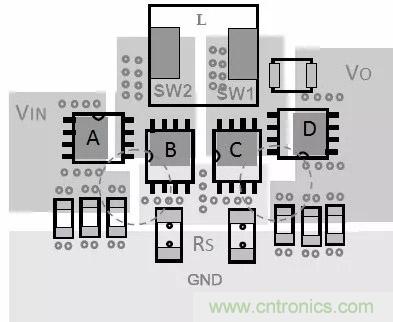 兩者的兼顧對PCB設計要非常的小心,開關回路中du/dt比較大的節點SW1和SW2及其回路,要盡可能的小,因為這些環路產生很大的電場發射。