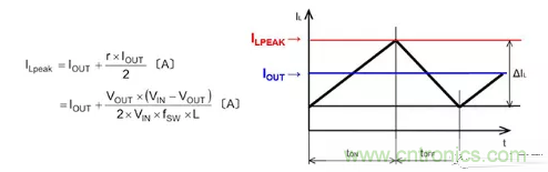 從公式和電流波形可知,ILPEAK值為ΔIL的1/2加IOUT的值。