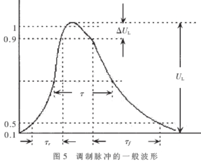 zailixiangqingkuangxia,maichongtiaozhiqishuchudemaichongyingweijuxing,juxingmaichongdingbupingtan,maichongchixuqijianxuebengguanzhendangqidegonglvhepinlvwending。danshijishang,youyumaichongtiaozhiqizhongbukebimiandicunzaiyoujishengcanliang,lirufenbudianrong、引線電感等,而其上的電壓、電流又是不能突變的,這就使得脈衝調製器不可能輸出理想的矩形調製脈衝,一般脈衝波形如圖5所示。