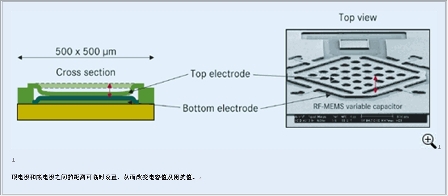 圖2:射頻-微機電係統的工作模式(圖中文字:頂電極和底電極之間的距離可臨時設置,從而改變電容值及阻抗值)