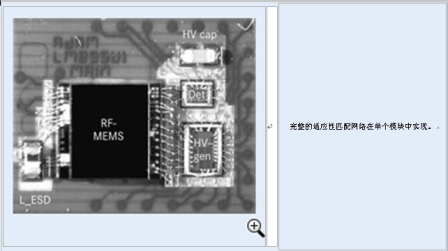 圖5:射頻-微機電係統試樣(圖中文字:完整的適應性匹配網絡在單個模塊中實現)