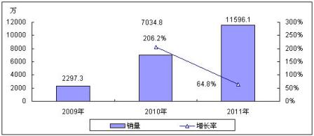 圖1 2009-2011年中國3G手機銷量預測
