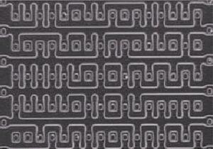 版圖重構的技術也可用於獲得隻讀型ROM的內容。ROM的位模式存儲在擴散層,用氫氟酸(HF)去除芯片各覆蓋層後,根據擴散層的邊緣就很容易辨認出ROM的內容(圖3)。