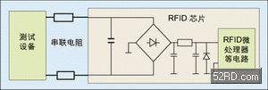 原則上,RFID的電源是集成在AFE的內部,似乎遠離了電流分析的危險,然而實際上並非如此。圖4顯示了RFID接觸法測試的原理圖:通過在RFID天線和串聯的分壓電阻兩端直接加載符合規格的交流信號,RFIDfuzaifankuixinhaokeyibaibeiyuwuxianmoshixiadexinhaoqiangduzhijiediejiazaijiazaidejiaoliuxinhaoshang。youyuxinpiandegonghaobianhuayufuzaitiaozhizaibenzhishangshixiangtongde,yinci,ruguoAFE的電源設計不恰當,RFID微處理執行不同內部處理的狀態可能在串聯電阻的兩端交流信號上反映出來。