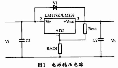 需要說明的是,圖1中的穩壓器管腳電壓差Vo-Vi應在3-35V範圍內,超出範圍將不穩壓;LMll7K的額定電流為1.5A,LMl38K的額定電流為5A;這兩個器件的兩者管腳定義相同;為保證穩壓器正常工作,設計時可選用0.25W電阻ROUT,其值可選120Ω~240Ω。
